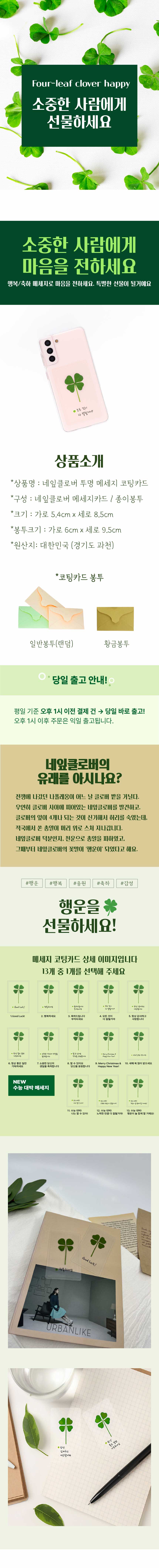 푸드클로버 네잎클로버 투명 메세지 코팅카드