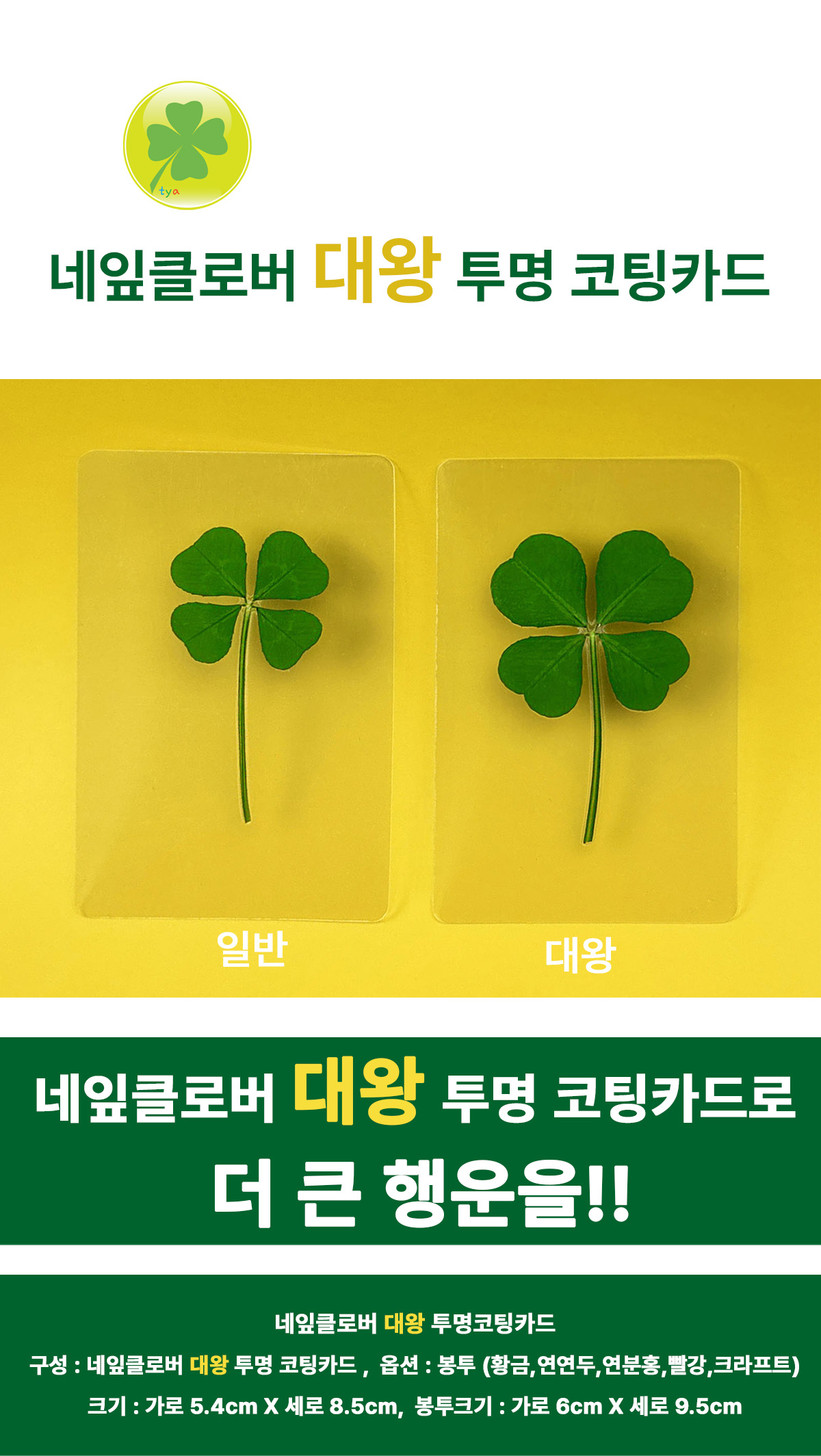 대왕_진짜 네잎클로버 코팅 투명카드 대형 특대 한정판