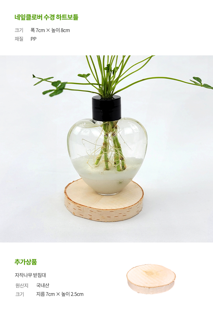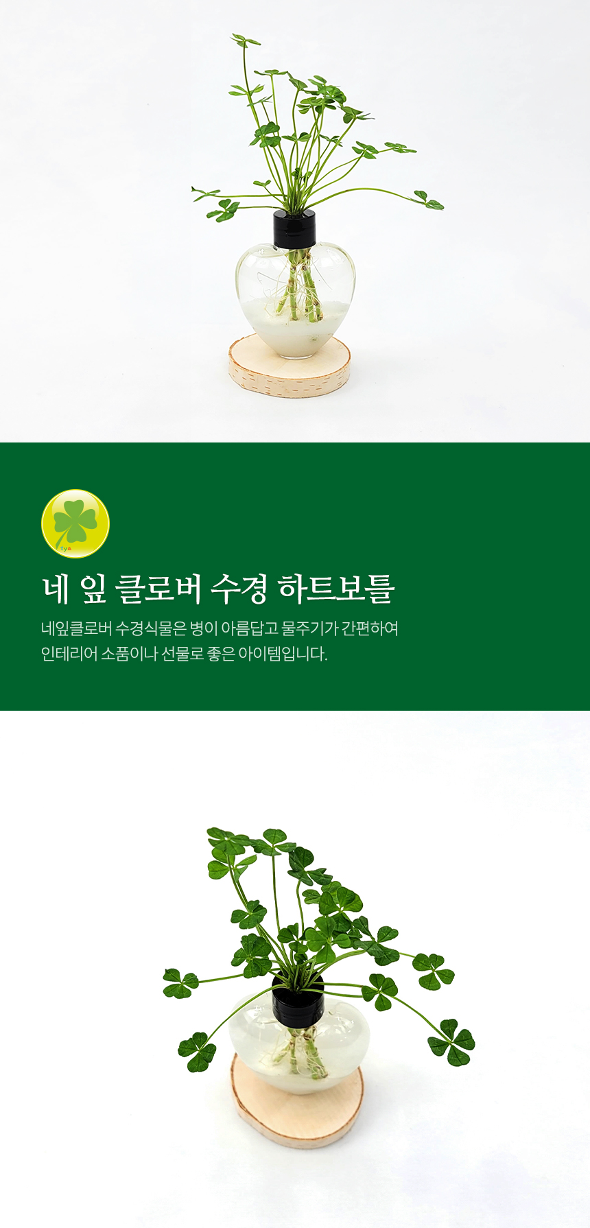 푸드클로버 네잎클로버 수경 재배 하트보틀 영문