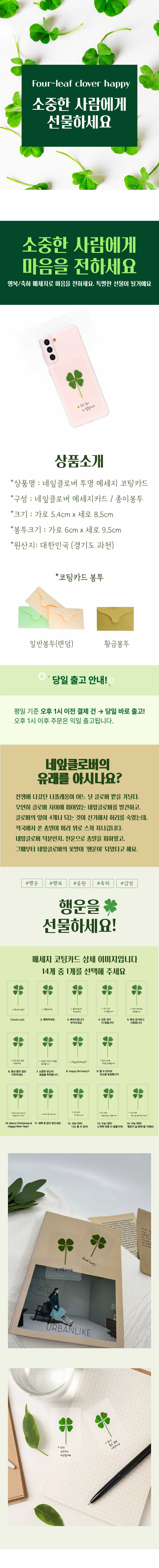 푸드클로버 네잎클로버 투명 메세지 코팅카드